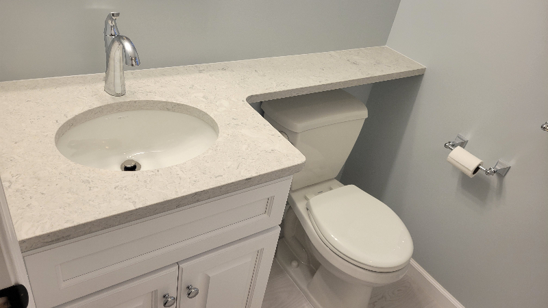 This Harrisburg bathroom may be small, but the transformation is significant. The updated layout, custom countertop, and modern finishes help the room feel larger, more functional, and more welcoming. With durable materials and a design built around the homeowner’s needs, this remodel will stay beautiful and practical for many years.
