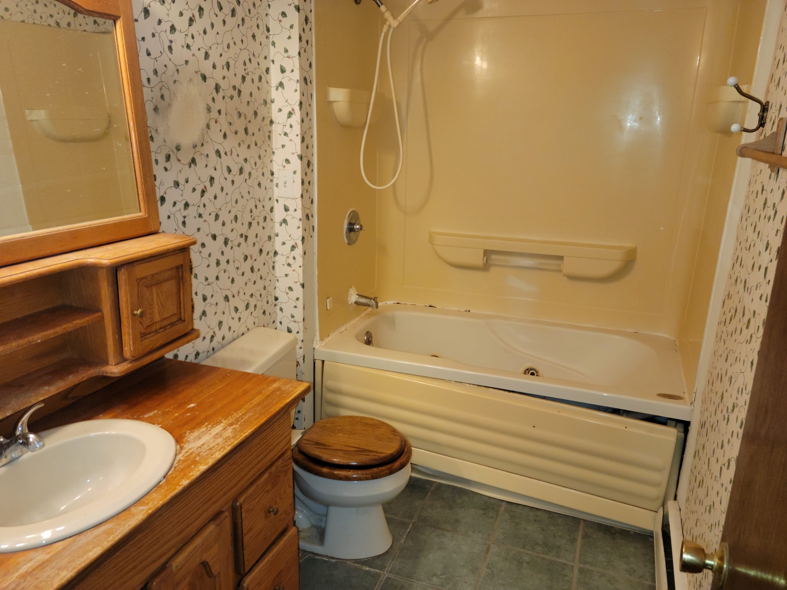 This here is a perfect example of when your bathroom was strung along JUST a bit too far… Actually, in this situation, the homeowners bought this home just a few years back and knew a tub replacement was high up on the list. Not only because the there was 13 pounds of caulking around the tub spout but also the toilet was leaking and causing subfloor damage.